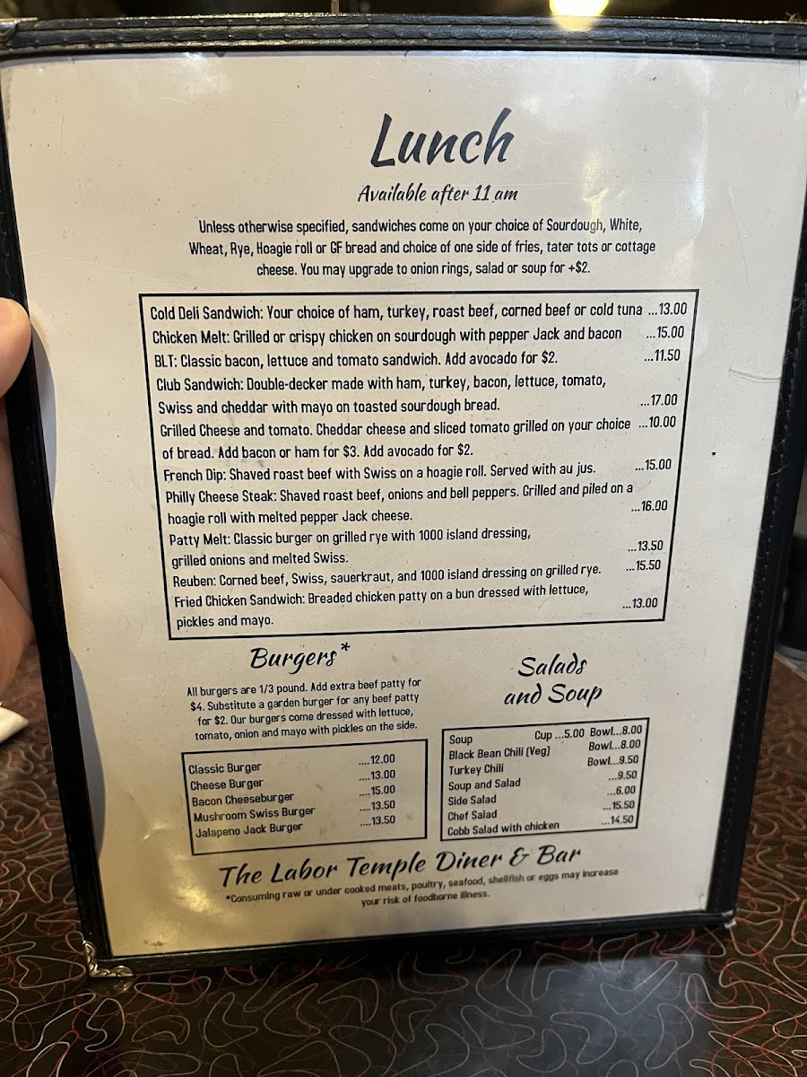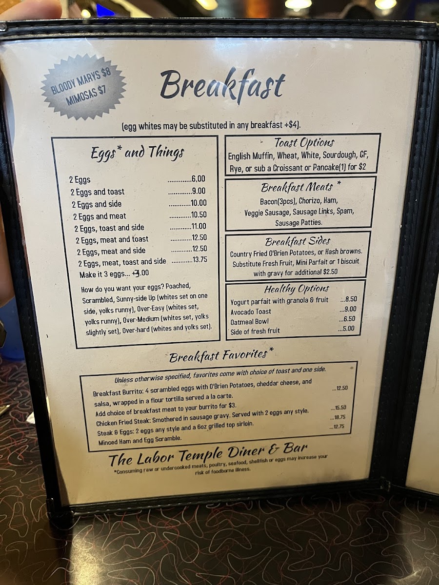 With its friendly service, generous portions, and affordable prices, Labor Temple is a community staple. Whether you're craving a quick bite or a leisurely breakfast, this diner makes every meal a comforting experience steeped in local history.